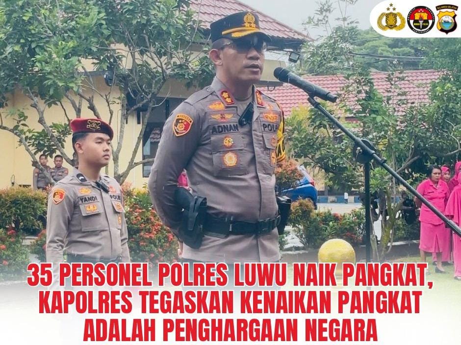 35 Personel Polres Luwu Naik Pangkat, Negara Beri Kepercayaan Lewat Institusi Polri