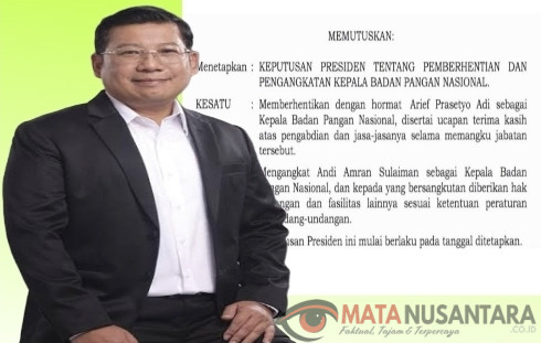 JAKARTA, MATANUSANTARA —Presiden Prabowo Subianto resmi mencopot Arief Prasetyo Adi dari jabatannya sebagai Kepala Badan Pangan Nasional (Bapanas). Keputusan ini tertuang dalam Keputusan Presiden (Keppres) Nomor 116/P Tahun 2025 tentang Pemberhentian dan Pengangkatan Kepala Badan Pangan Nasional.