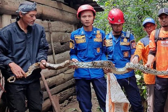 Berniat Cari Pakan Ternak, Seorang Warga di Pemalang Dihadang Ular Sanca Besar