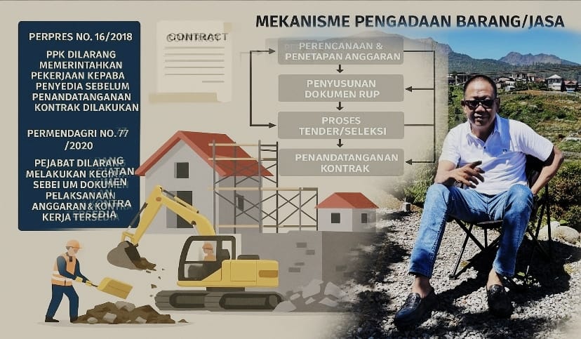 “Artinya, pekerjaan yang sudah berjalan tanpa kontrak merupakan pelanggaran langsung terhadap prinsip legalitas dan akuntabilitas pengadaan,” tegas Farid.