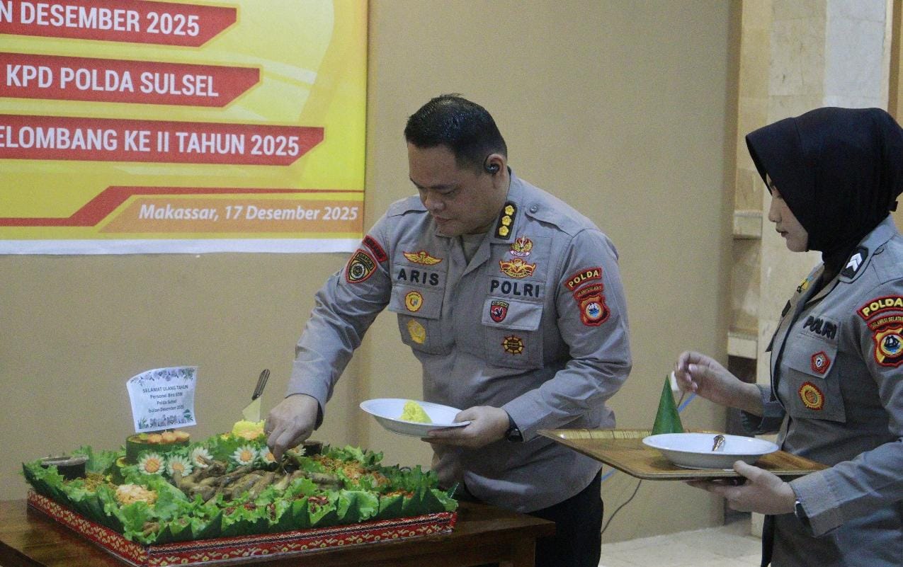 MAKASSAR, MATANUSANTARA — Biro Sumber Daya Manusia (SDM) Polda Sulawesi Selatan menggelar syukuran ulang tahun personel periode Desember 2025 yang dirangkaikan dengan pengantar tugas alumni Sekolah Inspektur Polisi (SIP) Angkatan 54.2 Tahun Anggaran 2025. Kegiatan berlangsung di Sasana Beladiri Appatuju Polda Sulsel, Rabu (17/12/2025) pagi.