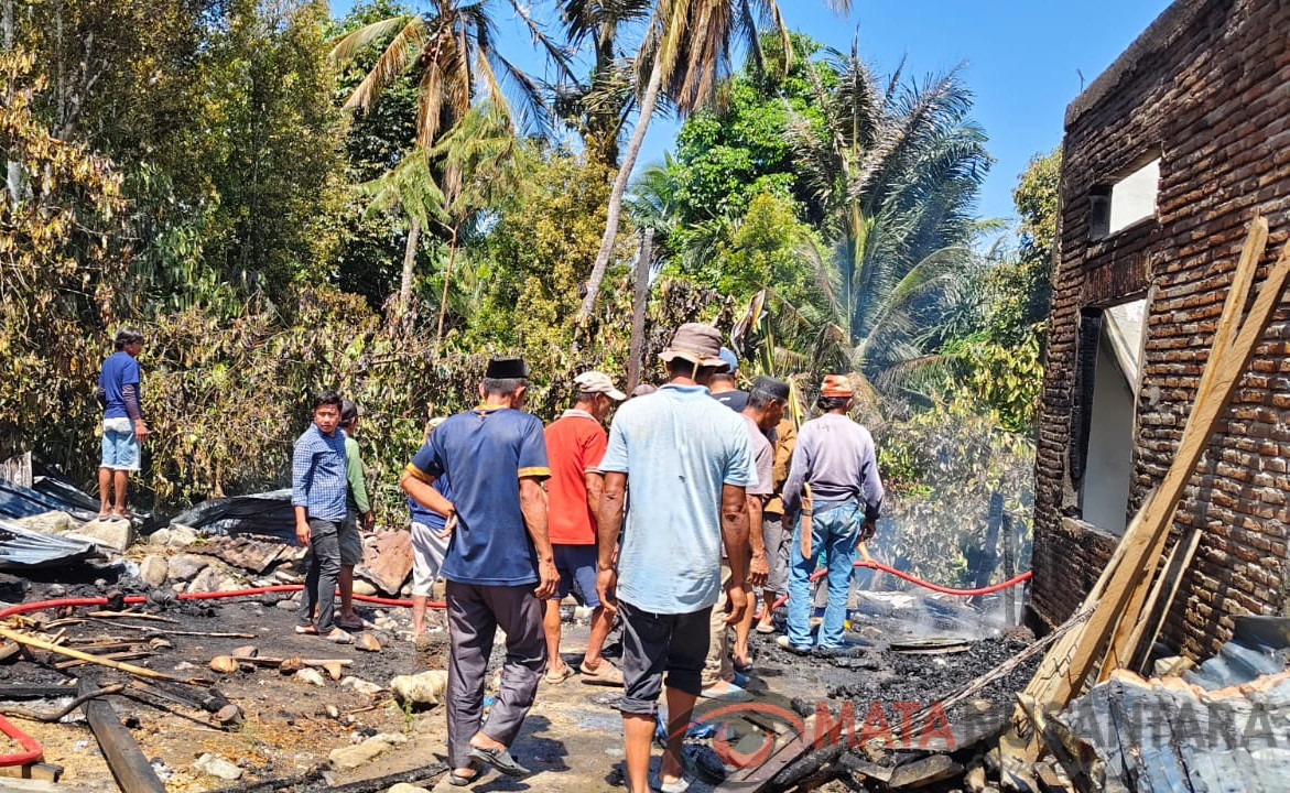 Diduga, sisa bara api yang belum padam memicu kebakaran hebat hingga menghanguskan seluruh bangunan rumah beserta isinya.