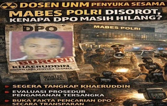 MAKASSAR, MATANUSANTARA — Penetapan status Daftar Pencarian Orang (DPO) terhadap dosen Universitas Negeri Makassar (UNM) berinisial Khaeruddin membuka babak baru dalam kasus dugaan pelecehan seksual terhadap mahasiswa. Namun, status buron ini justru memantik pertanyaan serius publik soal ketegasan dan pengawasan penegakan hukum.