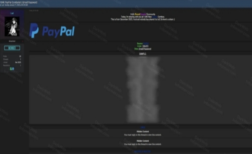 Seorang pelaku ancaman siber yang menggunakan nama samaran “Lud” mengklaim telah membagikan sekitar 104.472 baris data kredensial PayPal dalam format email:kata sandi.