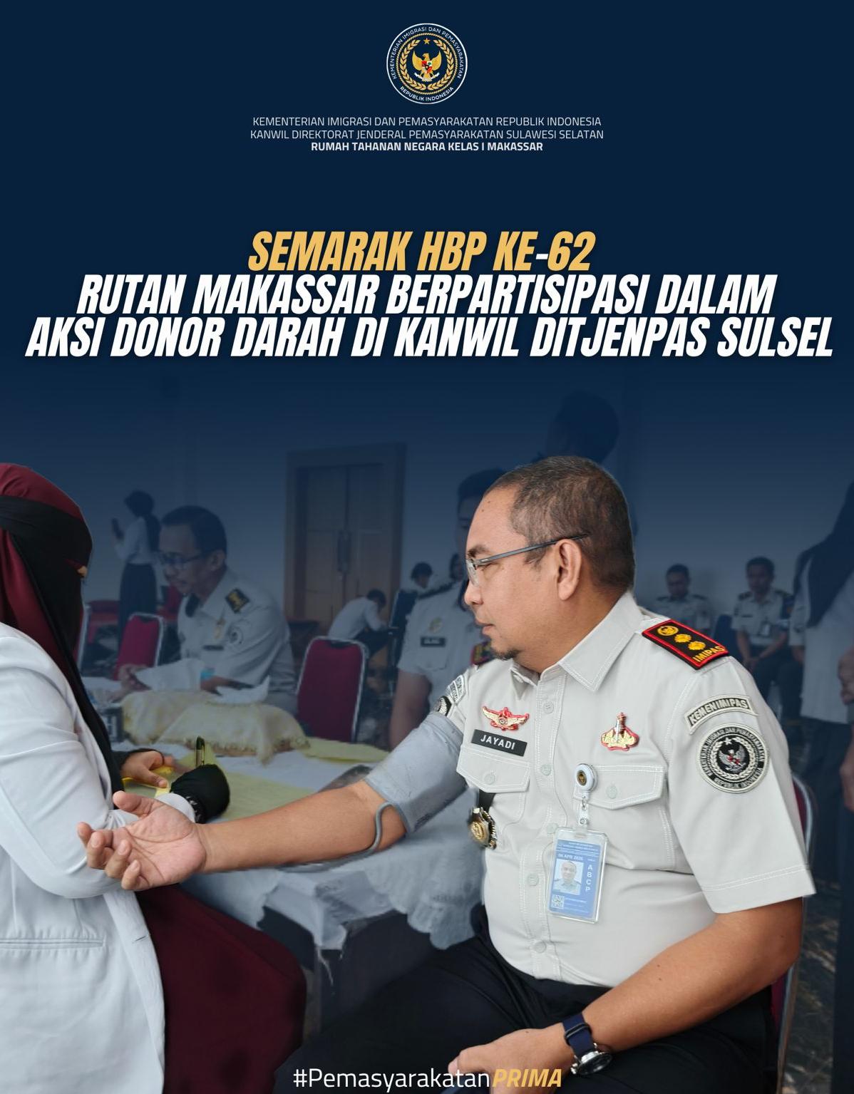 MAKASSAR, MATANUSANTARA — Peringatan Hari Bhakti Pemasyarakatan (HBP) ke-62 tidak lagi diposisikan sekadar seremoni tahunan. Rumah Tahanan Negara (Rutan) Makassar memanfaatkan momentum ini untuk menegaskan transformasi wajah pemasyarakatan melalui aksi nyata donor darah yang digelar di Kantor Wilayah Direktorat Jenderal Pemasyarakatan (Kanwil Ditjenpas) Sulawesi Selatan (Sulsel). Kamis 09 Maret 2026.