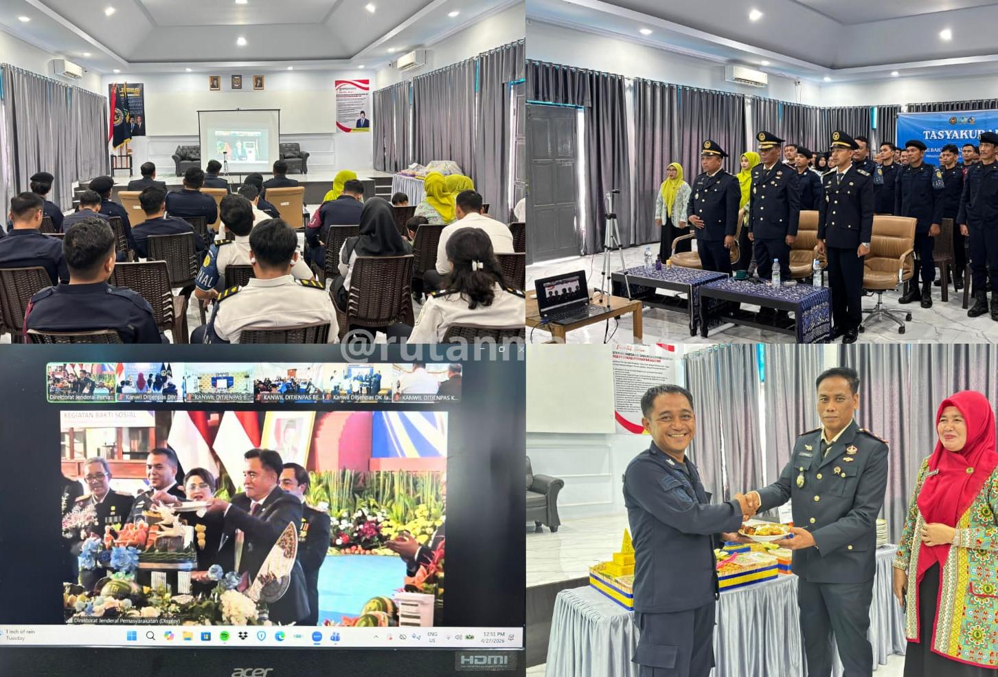 Rumah Tahanan Negara (Rutan) Kelas IIB Masamba mengambil bagian dalam tasyakuran nasional yang digelar secara virtual, Senin (27/04), mengusung tema “Pemasyarakatan Kerja Nyata, Pelayanan Prima.” Kegiatan ini terpusat di Auditorium Prof. Muladi Politeknik Imigrasi dan Pemasyarakatan dan diikuti serentak oleh seluruh jajaran pemasyarakatan di Indonesia.