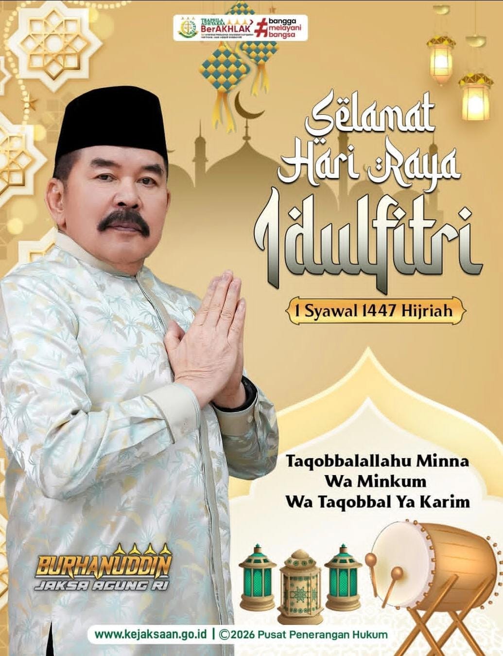 Jaksa Agung RI beserta jajaran turut mengucapkan selamat Idulfitri 1447 Hijriah.
