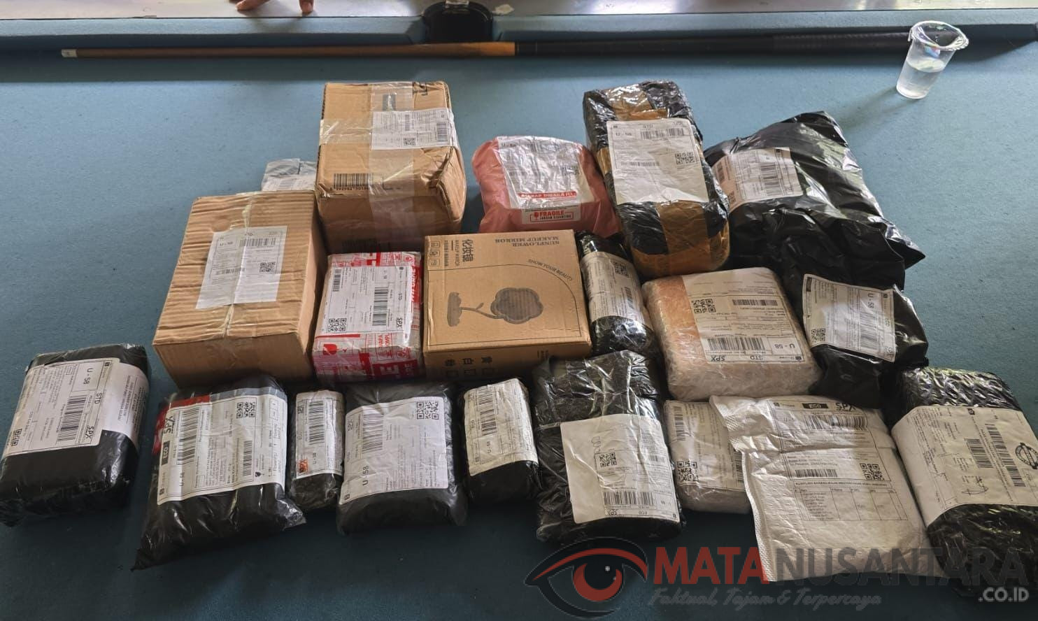 Beberapa paket yang belum sempat dikirim pelaku sembunyikan di kandang ayam di belakang rumahnya.