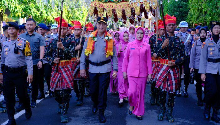 Kedatangan Kapolda Sulsel disambut hangat oleh Wakapolda Sulsel Brigjen Pol. Nasri, S.I.K., M.H. beserta istri Ny. Lina Nasri, serta jajaran pejabat utama dan personel Polda Sulsel.