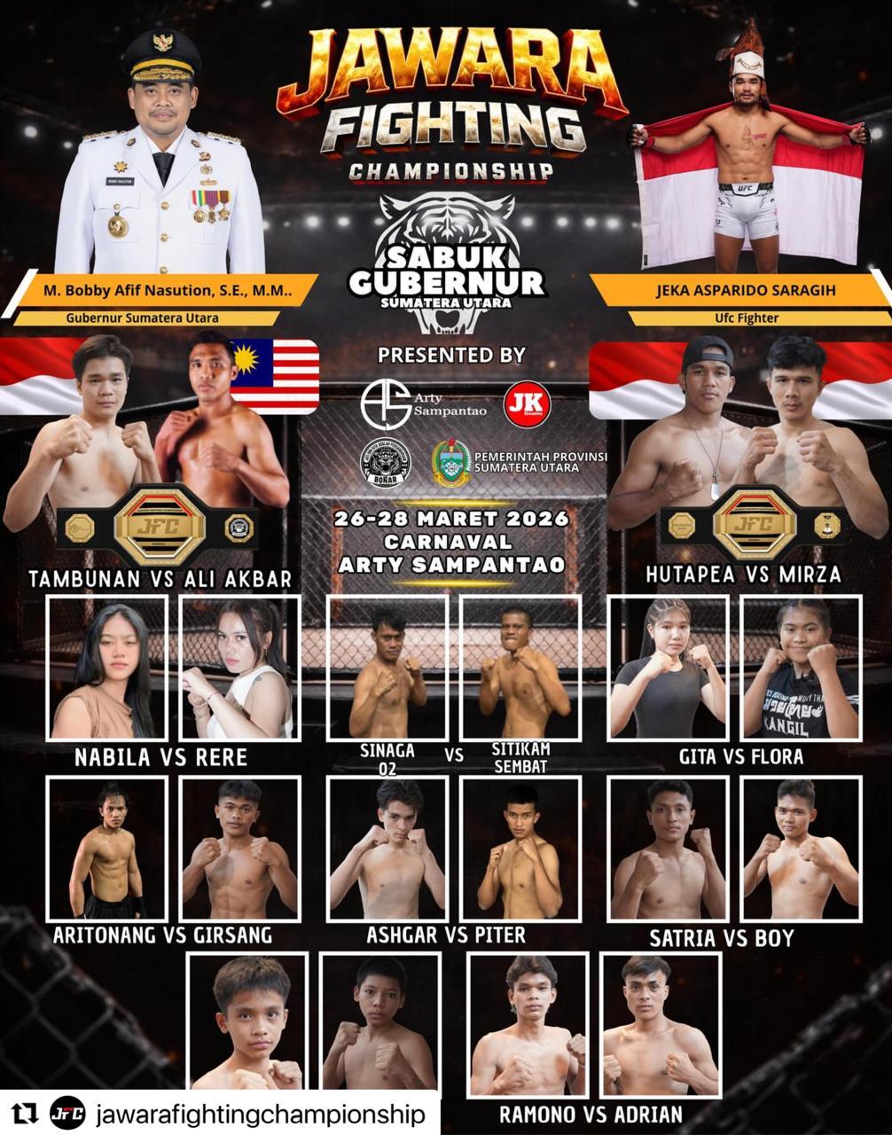 SUMUT, MATANUSANTARA –Sumatera Utara (Sumut) bersiap menjadi episentrum pertarungan lintas negara. Jawara Fighting Championship (JFC) Season 2 tidak sekadar menghadirkan duel fisik, tetapi juga pertarungan gengsi antara Indonesia dan Malaysia dalam perebutan Sabuk Bapak Gubernur Sumut.