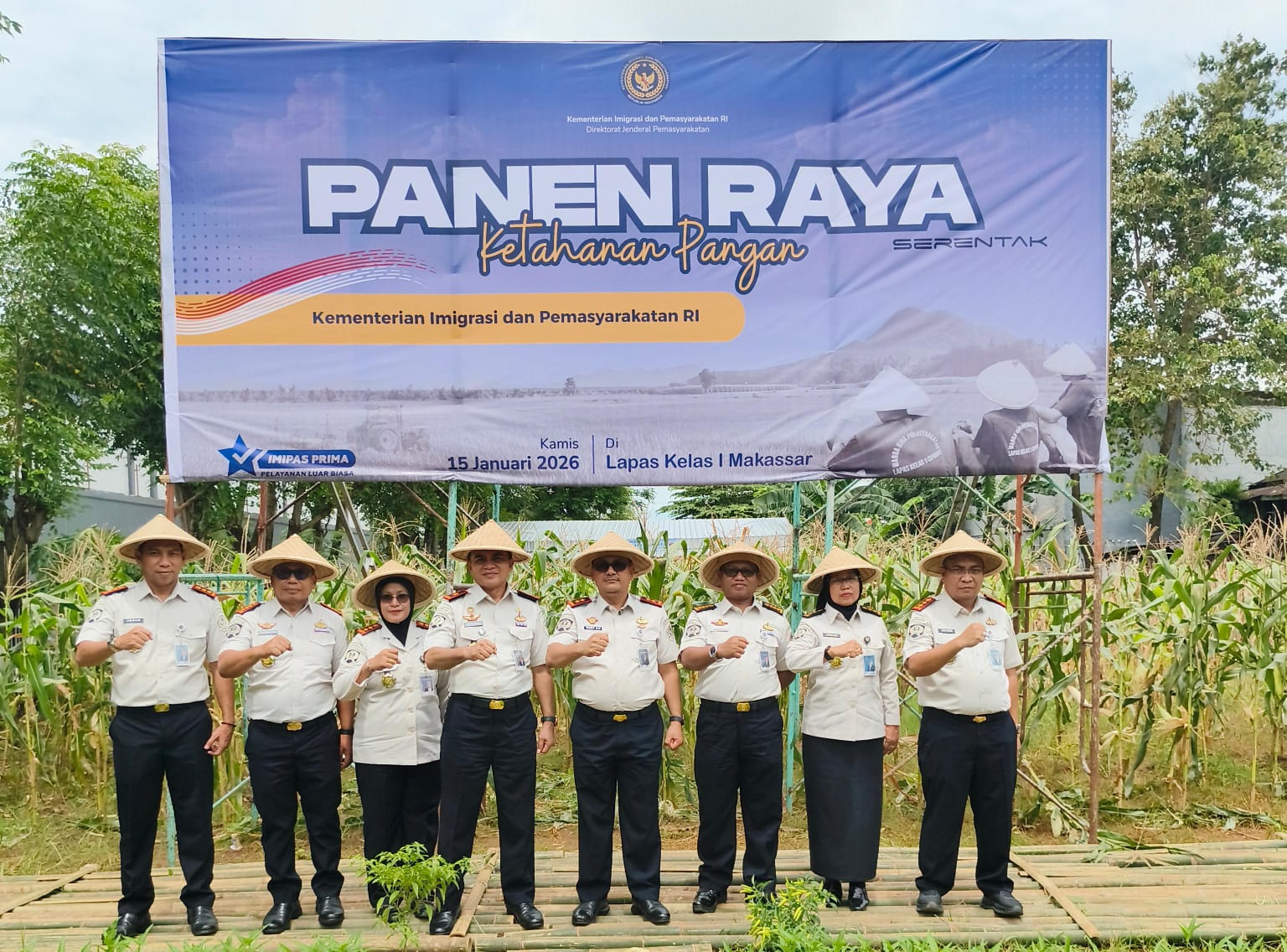 MAKASSAR, MATANUSANTARA – Kepala Rumah Tahanan Negara (Rutan) Kelas I Makassar, Jayadikusumah, menghadiri kegiatan Panen Raya Ketahanan Pangan yang diselenggarakan oleh Kementerian Imigrasi dan Pemasyarakatan di Lembaga Pemasyarakatan (Lapas) Kelas I Makassar pada Kamis (15/1/2026).