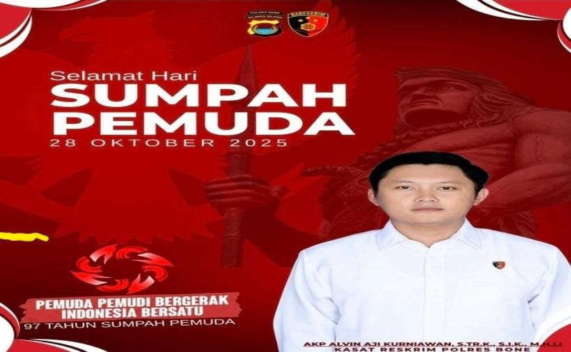 BONE, MATANUSANTARA — Momentum Hari Sumpah Pemuda ke-97 menjadi panggilan nurani bagi setiap anak bangsa untuk kembali menyalakan api semangat perjuangan. Dalam semangat itu, Kasat Reskrim Polres Bone, AKP Alvin Aji Kurniawan, S.Tr.K., S.I.K., M.H.Li menyampaikan pesan mendalam tentang makna persatuan, tanggung jawab, dan keberanian generasi muda dalam menjaga keutuhan bangsa.