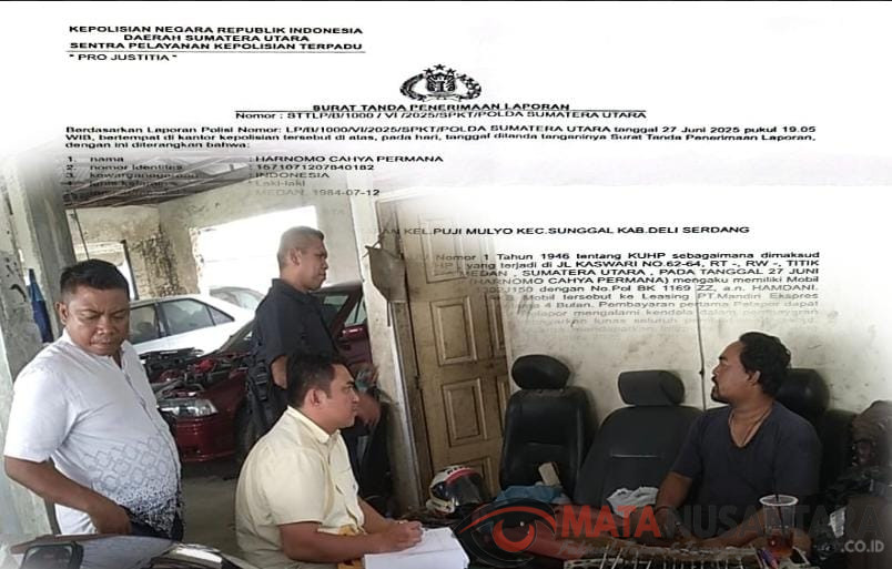 MEDAN, MATANUSANTARA – Seorang warga Deli Serdang, Harmono Chaya Permana (HCP), melaporkan dugaan tindak pidana perampasan kendaraan bermotor oleh oknum yang mengatasnamakan perusahaan pembiayaan (leasing) ke Polda Sumatera Utara.