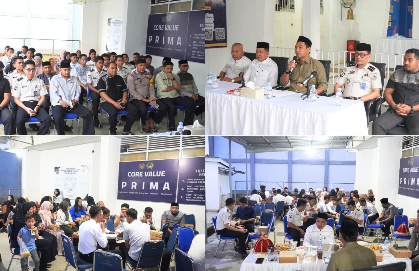 Setelah rapat selesai, kegiatan dilanjutkan dengan buka puasa bersama yang diikuti oleh seluruh petugas. Momentum tersebut dimanfaatkan sebagai ajang mempererat kebersamaan dan memperkuat solidaritas antar petugas dalam menjalankan tugas pembinaan dan pelayanan pemasyarakatan, sekaligus memperkuat sinergi dengan aparat keamanan setempat.