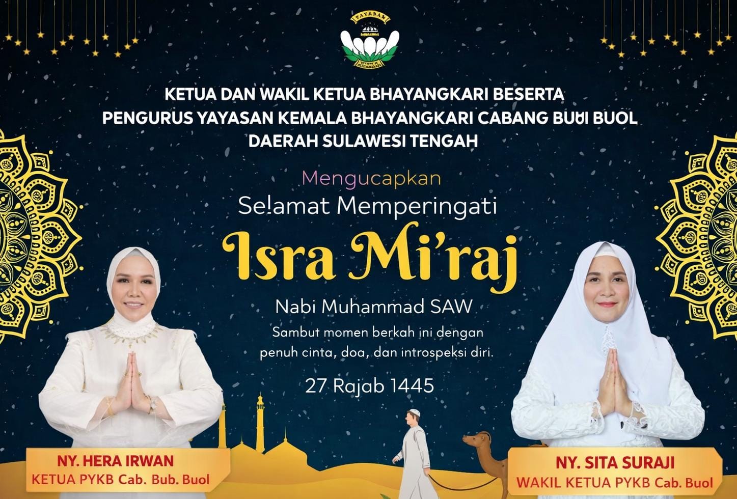 Ketua YKB Cabang Buol, Ny. Hera Irwan, bersama Wakil Ketua YKB Cabang Buol, Ny. Sita Suraji, kepada matqnusantara.co.Id, mengajak seluruh anggota Bhayangkari untuk menyambut Isra Mi’raj dengan penuh keikhlasan, doa, serta refleksi diri, guna memperkuat peran keluarga Polri yang religius, harmonis, dan berakhlak mulia.