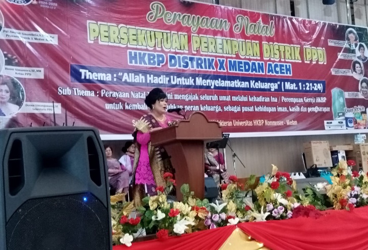 MEDAN, MATANUSANTARA – Perayaan Natal Persekutuan Parompuan Distrik (PPD) HKBP Distrik X Medan Aceh, berlangsung meriah dan penuh sukacita, pada Selasa, 2 Desember 2025 di Gedung Aula Fakultas Kedokteran Universitas HKBP NOMENSEN MEDAN dimulai sejak pukul 16.00 Wib sampai dengan selesai.