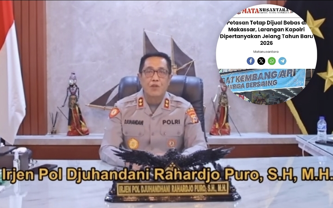 MAKASSAR, MATANUSANTARA – Reaksi Kepala Polisi Daerah Sulawesi Selatan (Kapolda Sulsel) Irjen Pol. Djuhandhani Rahardjo Puro, S.H., M.H., mencuat setelah Pengamat kebijakan publik Kota Makassar, M. Shyafril Hamzah, S.H., M.H., menyoroti aktivitas toko distributor petasan di Jalan Irian, Kelurahan Pattunuang, Kecamatan Wajo. Toko ini diduga terang-terangan menjual petasan dan mengabaikan larangan Kapolri Jenderal Listyo Sigit Prabowo.