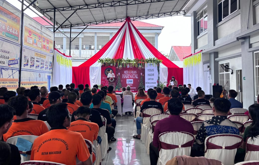 MAKASSAR, MATANUSANTARA — Rumah Tahanan Negara (Rutan) Kelas I Makassar menyelenggarakan Perayaan Natal bagi Warga Binaan Pemasyarakatan (WBP) Nasrani dengan penuh khidmat, aman, dan sarat makna kebersamaan. Kegiatan ini menjadi bagian dari pembinaan kepribadian sekaligus pemenuhan hak beribadah bagi warga binaan, yang berlangsung tertib di lingkungan Rutan Kelas I Makassar.
