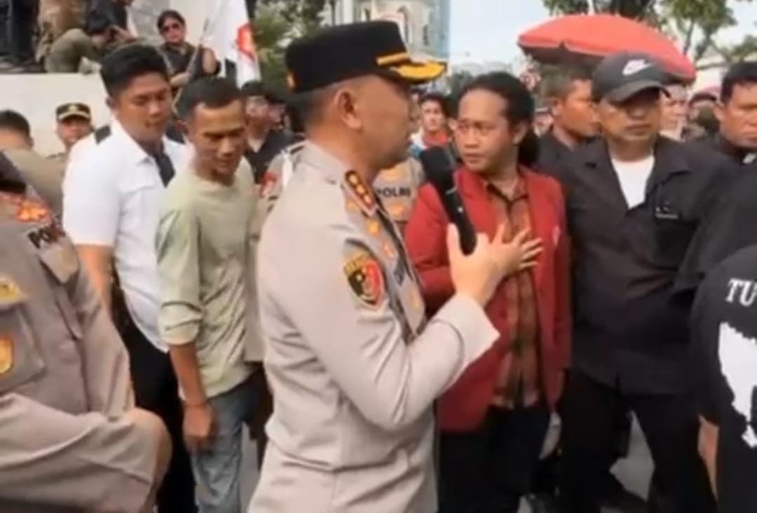 MEDAN, MATANUSANTARA — Suasana unjuk rasa di depan Kantor Gubernur Sumatera Utara, Senin (10/11/2025), berlangsung sejuk dan kondusif. Kapolrestabes Medan Kombes Dr. Jean Calvijn Simanjuntak turun langsung ke lapangan dan berbaur dengan massa aksi yang menyuarakan aspirasi mereka secara damai.