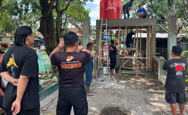 Bravo!! Brimob Sulsel Renovasi Sumur Umum Pekuburan Islam Beroangin Makassar