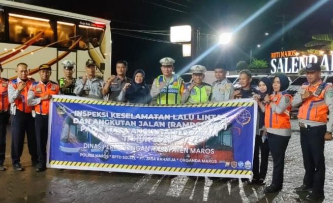 Mudik Aman Keluarga Bahagia, Polres Maros Bersama Dishub Lakukan Ramp Check Kendaraan Lebaran