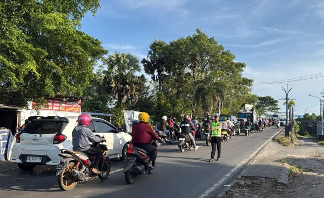 Polsek Tamalate Intensifkan Ngatur Lalin Pagi, Arus Jembatan Barombong Tetap Lancar