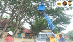 Polres Luwu Kolaborasi Bareng PJU Lakukan Penebangan Pohon Cegah Ancaman Pohon Tumbang