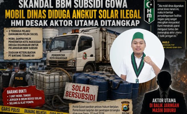 Skandal BBM Subsidi Gowa Mengguncang, Mobil Dinas Diduga Angkut Solar Ilegal, HMI Desak Aktor Utama Ditangkap