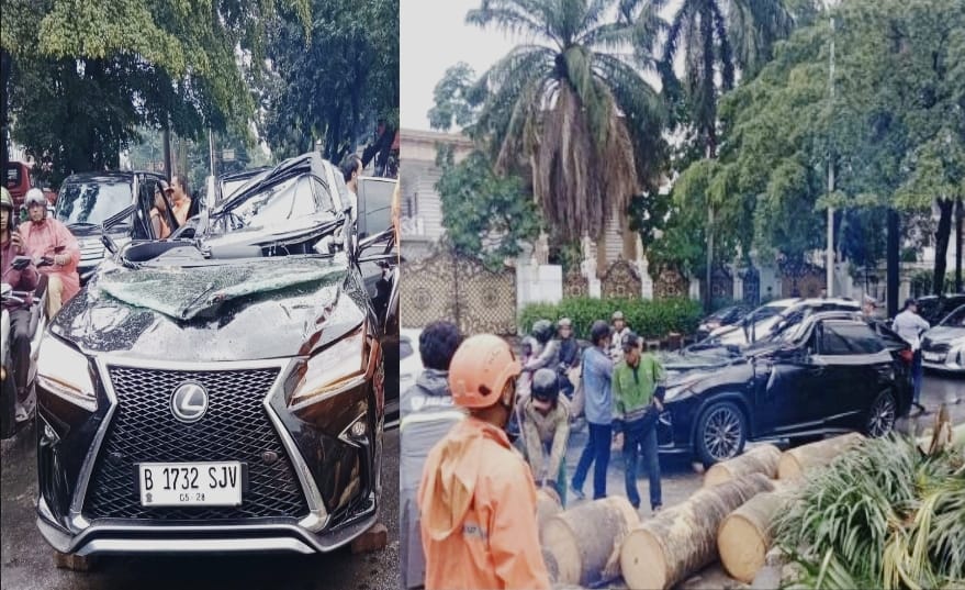 Tragedi di Pondok Indah: Pengendara Lexus Tewas Tertimpa Pohon Saat Hujan Deras