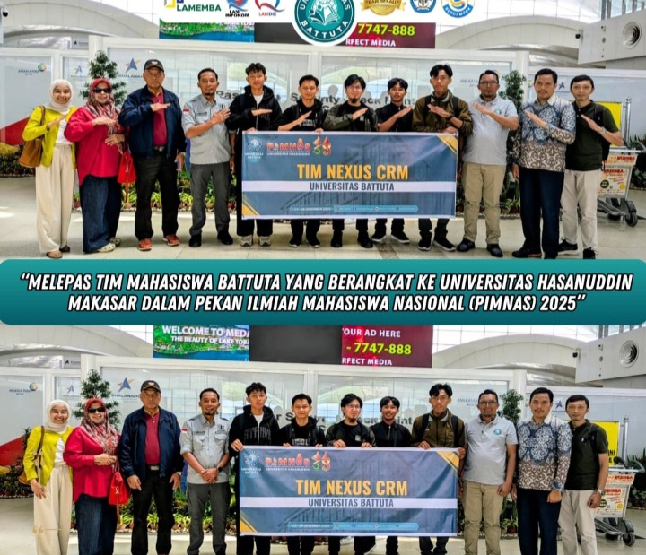 SUMATERA UTARA, MATANUSANTARA – Ketua Pengurus Yayasan dan Rektorat Universitas Battuta melepas Tim Mahasiswa dan Dosen Pembimbing Universitas Battuta (@pkmpi.nexuscrm ) untuk berangkat ke Pekan Ilmiah Mahasiswa Nasional (PIMNAS) tahun 2025 di Universitas Hasanuddin Makassar, Sulsel. Dimana menjadi 1 dari 4 Perguruan Tinggi yang mewakili Sumatera Utara.