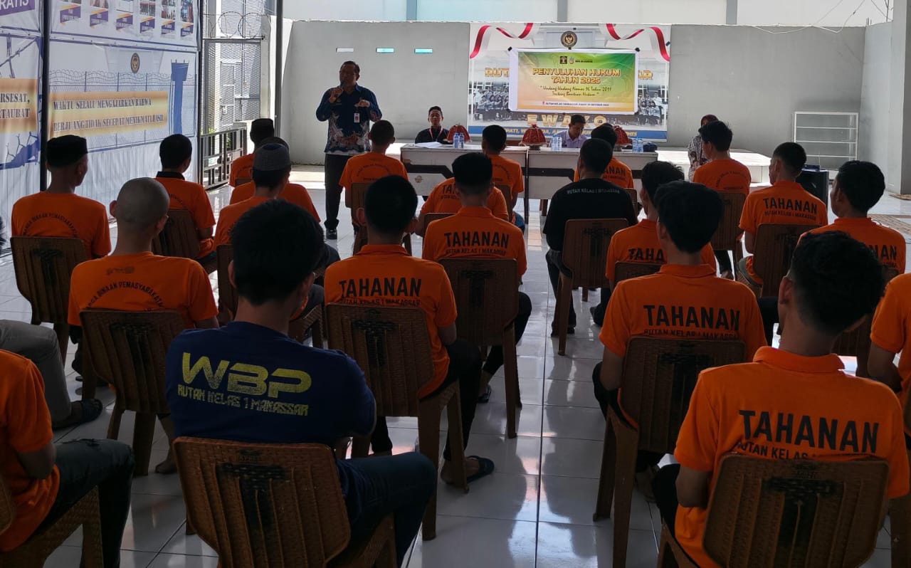MAKASSAR, MATANUSANTARA — Rutan Kelas I Makassar menggelar Penyuluhan Hukum Tahun 2025 bertema “Pemenuhan Hak atas Bantuan Hukum Berdasarkan Undang-Undang Nomor 16 Tahun 2011” sebagai langkah memperkuat pemahaman warga binaan mengenai hak memperoleh bantuan hukum secara gratis.