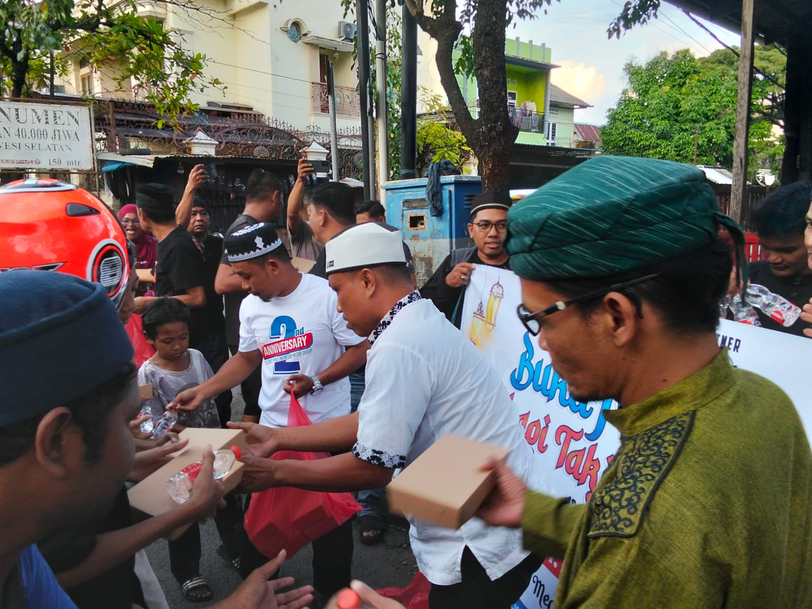 Dalam aksi sosial keagamaan ini, sebanyak 150 kotak nasi dibagikan dalam nuansa kebersamaan dan silaturahmi bersama warga sekitar.